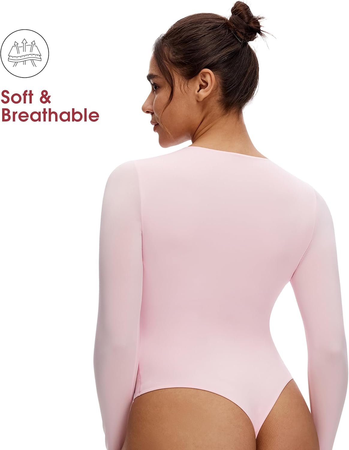 This long sleeve bodysuit offers a smooth, flattering fit with its soft, stretchy fabric that retains its shape all day. Designed for comfort and versatility, it enhances your silhouette while remaining breathable and lightweight.
